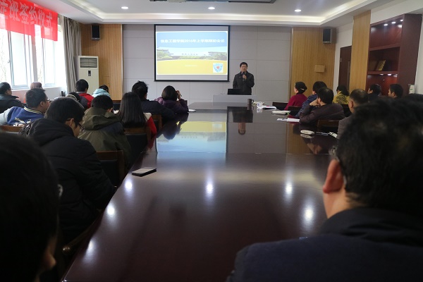 最后,陈云志副经理对本学期的工作进行了全面部署。他布置了分院本学期六大重点工作:成立新的专企融合三级学院(安恒信息安全学院)、推进校企合作(圣泓班、东忠、安恒、银江)、承办信息安全与管理省赛、完成职业素质教育延伸工程的验收、落实个性化培养工作室和探索落实公寓网格化管理等。他希望全体教职员工继续发扬“十二五”期间的团结拼搏精神,在新的一年中再接再厉,为“十三五”开好头。