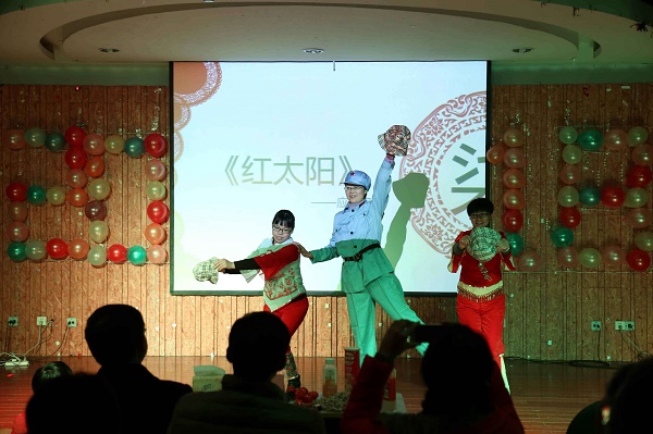 在大家的掌声和期待中,两名主持人宣布新年联欢会正式开始。分院的三位领导为大家带来的开场舞《青春修炼手册》,一下子就把晚会气氛推向高潮,领导们的青春舞姿和打扮引得台下观众笑声连连,掌声不断。随后,各个专业和部门奉献了各自精心准备的精彩歌唱和舞蹈节目,同时有趣的互动游戏环节也极大地调动了大家的热情。联欢会接近尾声之际,老师们纷纷上台合影,共述感激之心、共叙同事之谊。大家共同期待在2018年继续团结奋斗,努力在各项工作中取得更大的成绩。