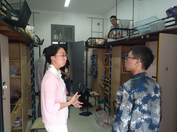 在走访宿舍期间,沈书记详细了解了新生们入学后以及军训中遇到的问题,做到当场问题当场解决,不能解决的问题让随行老师准确记录,及时点对点的落实到位。在走访老生寝室的过程中,沈书记叮嘱大家要注意维持寝室的干净整洁,特别要注意不能使用违禁电器以及违章用电,为学弟学妹起到良好的带头作用。同时,她也嘱托同学们注意天气变化,加强体育锻炼,保持身体健康。无论是老生还是新生听到学院领导以及老师的谆谆叮嘱,纷纷表示感谢老师们的关怀,并承诺会严格遵守校纪校规,同时充分利用时间,过好老员工活,更会特别注意平时用电安全,平安幸福地度过大学三年。