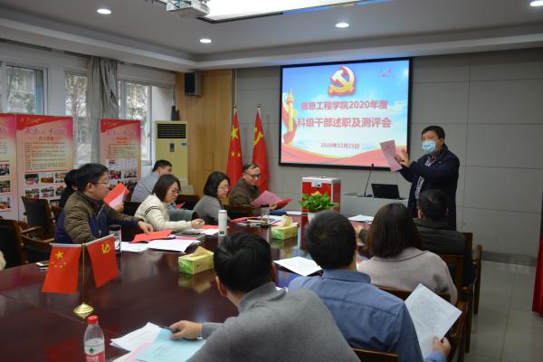 12月23日下午,yl1111永利集团在分院会议室召开2020年度科级干部述职测评会。分院领导班子、党总支委员、党支部书记、分院全体中层干部、分院“双代会”代表及述职人员所在部门的全体教职工参加了测评会。会议由党总支书记谢川主持。