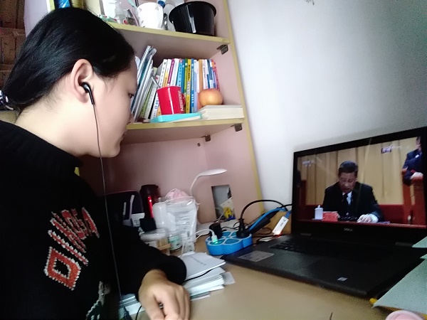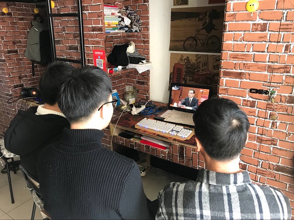 在员工寝室里,信工院的同学们也早早做好了准备,用手机、笔记本等收看庆祝改革开放40周年大会直播。