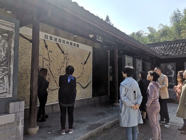 沐着春风,老师们来到了位于余杭区鸬鸟镇太公堂村的山脚下的余杭抗日战争纪念馆。大家参观了“日寇暴行 惨绝人寰”、“共赴国难 民族壮歌”、“奋勇抗敌 中流砥柱”、“历史胜利 永志不忘”等四个展区,深刻了解日本侵华的惨痛历史及人民群众英勇抗争的抗战历程,怀着沉痛之情悼念了在抗战中牺牲的革命先烈和死难同胞。