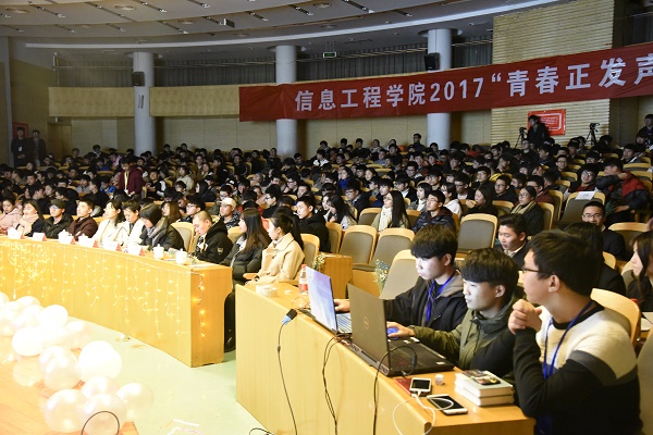 12月20日下午六点,yl1111永利集团2017“青春正发声”现场演说会在行政楼二楼报告厅如期举行。yl1111永利集团经理陈云志、党总支副书记沈音乐、团总支书记王璐瑜、校团委王正、信安专业辅导员邓晓南、计算机专业辅导员吴凯出席活动,学院17、16级员工和其他分院员工组织代表都来到了演说会的现场。