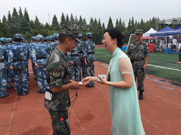 沈音乐对教官们的认真付出表示了感谢,对目前的军训成果给予充分肯定,并给每位教官送上了金嗓子喉宝。