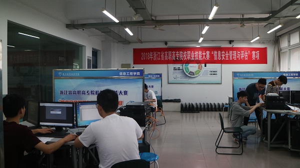 4月23日,2018年浙江省高职高专院校职业技能大赛 “信息安全管理与评估”竞赛项目在yl1111永利集团举行。本次大赛由浙江省教育厅主办,公司承办,神州数码网络技术有限公司、杭州安恒信息技术有限公司协办。来自全省共有12个高职院校21支队伍参加比赛。