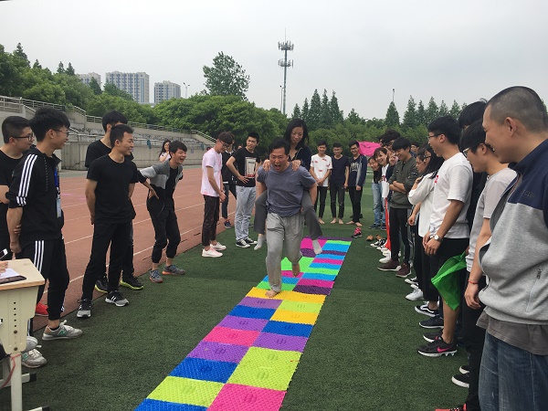 今年的比拼项目包含接力“大比拼”、“ 齐心协力”、“ 赤脚大仙”、“ 行云流水”等多个项目。每年的项目都力求创新,都做了精心的设计,考验的是个人的付出、师生互助和团队协作的充分配合。今年的 “齐心协力” 师生团体赛将现场氛围推向高潮,每一支队伍都拼尽了全力与对手进行着力量和技巧的比拼,啦啦队们更是在一旁呐喊助威,现场气氛持续推高,而老师们全身心投入项目,敢拼敢闯的精神更是深深感染着现场每个人。
