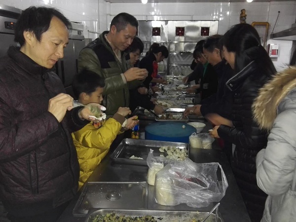 活动中老师们表现出极大的参与热情,大家热情高涨、分工合作、各显神通,忙得不亦乐乎。年轻的老师们还饶有兴致地向前辈们请教包饺子的秘诀和经验,形成了一道道蓬勃有序的风景线。大家你一言我一句,欢声笑语中包含着亲人般的同事情谊,包含着对新的一年祝福和期盼,其乐融融的气氛随着热气腾腾的饺子幸福弥漫,驱散了冬日的严寒,温暖着大家的心。十指翻飞间,一只只形状各异的饺子纷纷成型。很快,这些包含着幸福的饺子便出锅了。大家津津有味地吃着自己亲手包的饺子,脸上洋溢出了幸福的微笑。