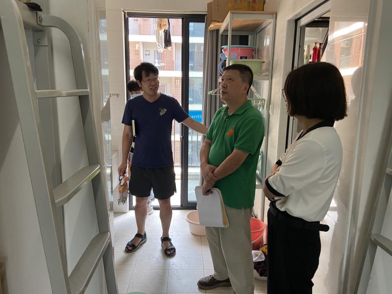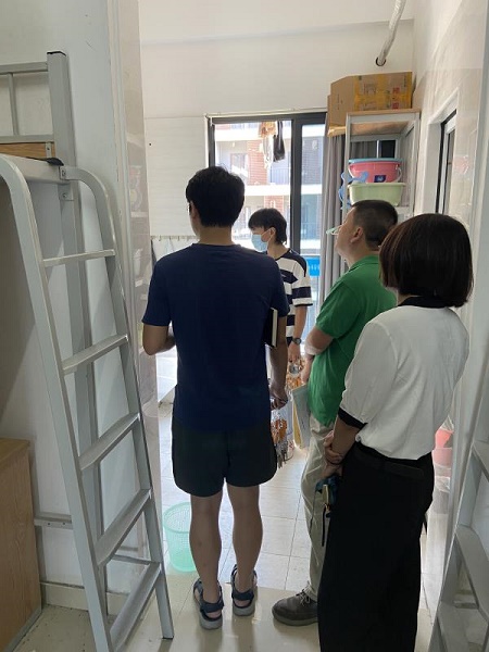 会后,谢川、陈超及学工办辅导员一行前往员工宿舍进行实地查看,详细了解员工的住宿情况。