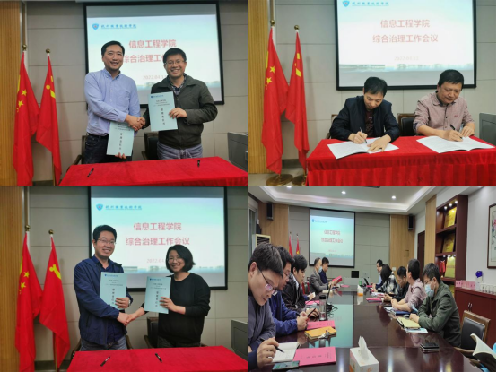 首先,综合办主任刘杰汇报了2021年的综合治理工作,对分院2021年度综治工作进行了总结。2021年分院综合治理工作平稳有序,未发生重大安全事故。随后,分院领导班子成员与三办一室五个专业代表签订了《2022年度社会治安综合治理目标管理责任书》,层层压实分院综合治理责任。