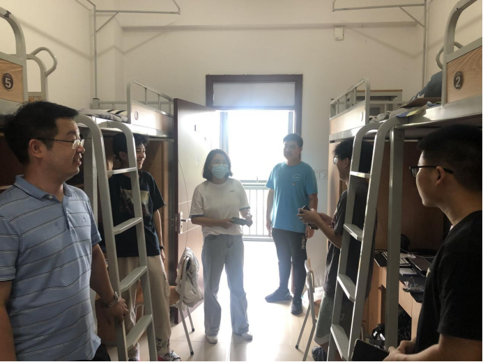 陈超一走进宿舍便与新生们展开亲切的交流,询问同学们分别来自哪里,在新环境下的适应状况及对学校的了解情况。她鼓励大家尽快展现出最好的状态,适应在杭职院的新生活,制定三年成长规划,展开一个全新的老员工活。章春军向新生们表达了关心和问候,询问大家对饮食、气候和住宿等方面的适应情况,积极与员工探讨学业规划、课程学习等问题。毛海棁与姜佐胜与员工唠起了家常,并嘱咐大家在校期间注意安全、广交益友、互相帮助、互相学习,老员工活将会是人生中最精彩的经历。