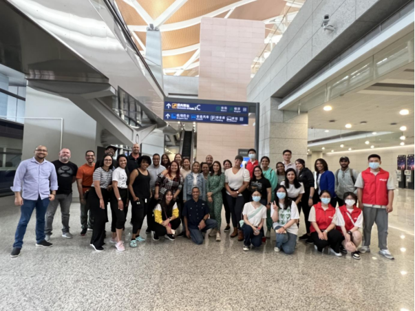 当天上午,“小红帽”们早早抵达上海浦东机场,他们身着红马甲、手持接机牌,以饱满的热情和灿烂的微笑,在指定位置等待多米尼加研修团的到来。外国友人到达后,“小红帽”们主动上前,为他们提供行李搬运、路线指引等服务。“小红帽”们积极、热情的服务态度得到了多米尼加友人们的赞扬,可爱的友人们与“小红帽”们在浦东机场一角合影留念,记录下这美好的时刻。