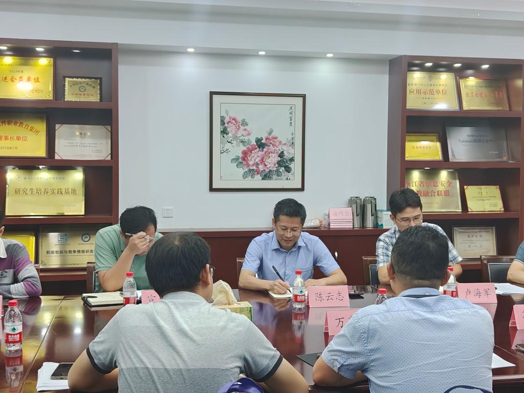 9月22日下午,2023年高职一体化教研活动会在yl1111永利集团1203会议室召开。yl1111永利集团经理陈云志,杭州市中策职业学校钱塘学校副董事长万亮斌,电子与信息集群负责人张骁;浦江县职业技术学校计算机专业组长陈萍萍;宁波建设工程学校教务处副主任袁瑾,计算机专业负责人张海钧;分院信息安全技术应用专业负责人宣乐飞,大数据技术专业负责人李新辉,物联网应用技术专业负责人葛海江参加会议。会议由陈云志主持。