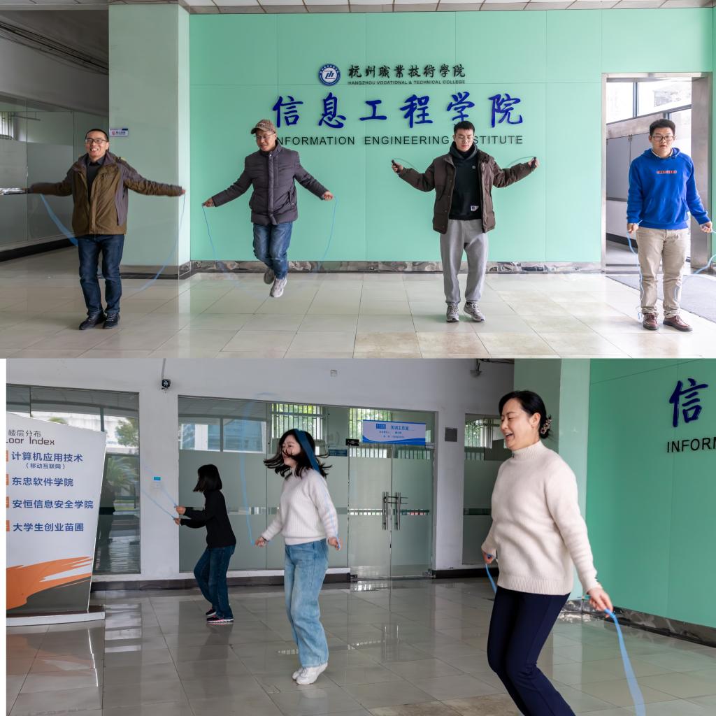 寒冬腊月,阳光和煦,信工分工会于12月13日下午在创业园主楼一楼大厅举办了一场别开生面的教师冬日跳绳活动。