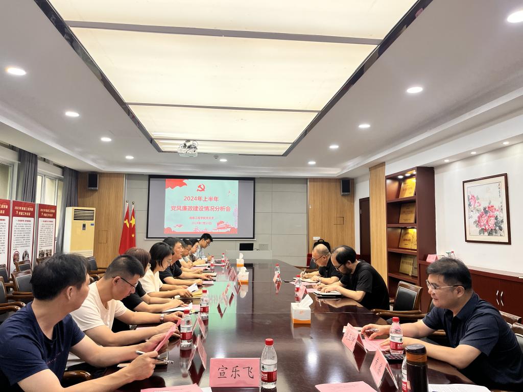 为进一步贯彻落实全面从严治党的方略,深化党风廉政建设,守牢廉政底线,7月10日下午,信息工程公司党总支召开2024年上半年党风廉政建设和反腐败工作情况分析会,公司党委委员、副董事长袁俊,校纪委委员、党委保卫部部长郑何敏到会并作指导,公司党总支书记、副经理谢川主持会议,学院领导班子成员、党总支委员、支部书记及相关教职工参会。