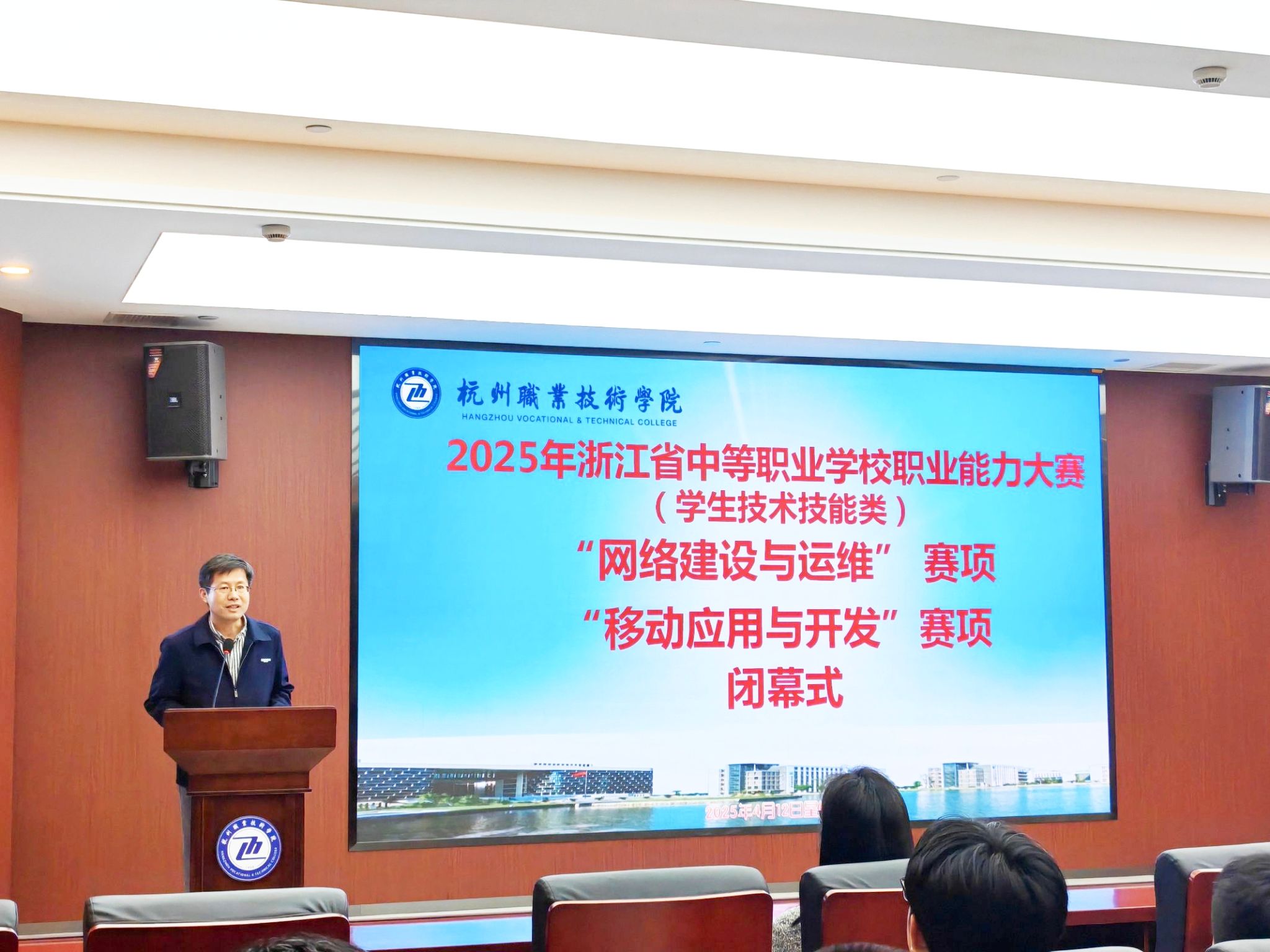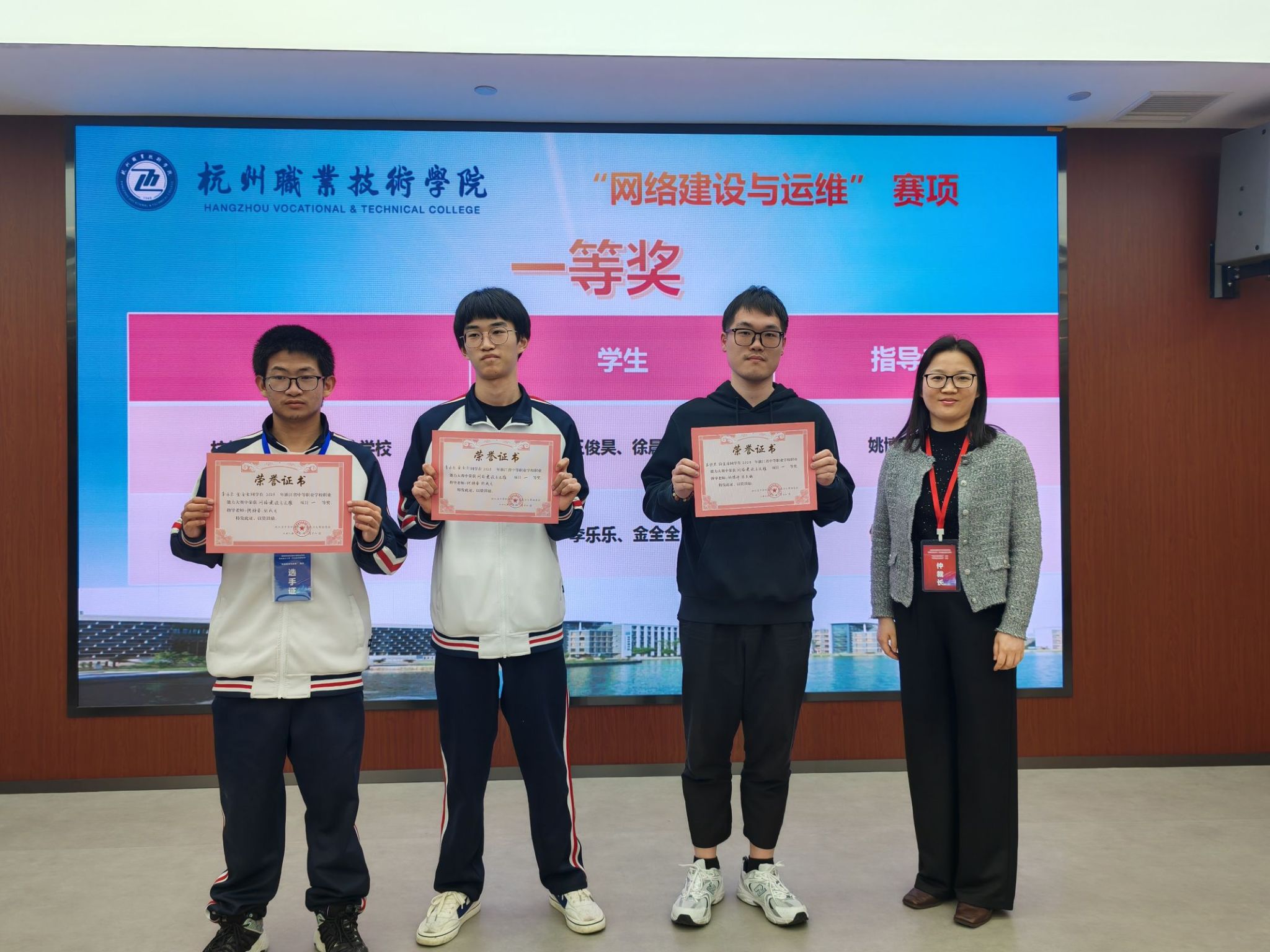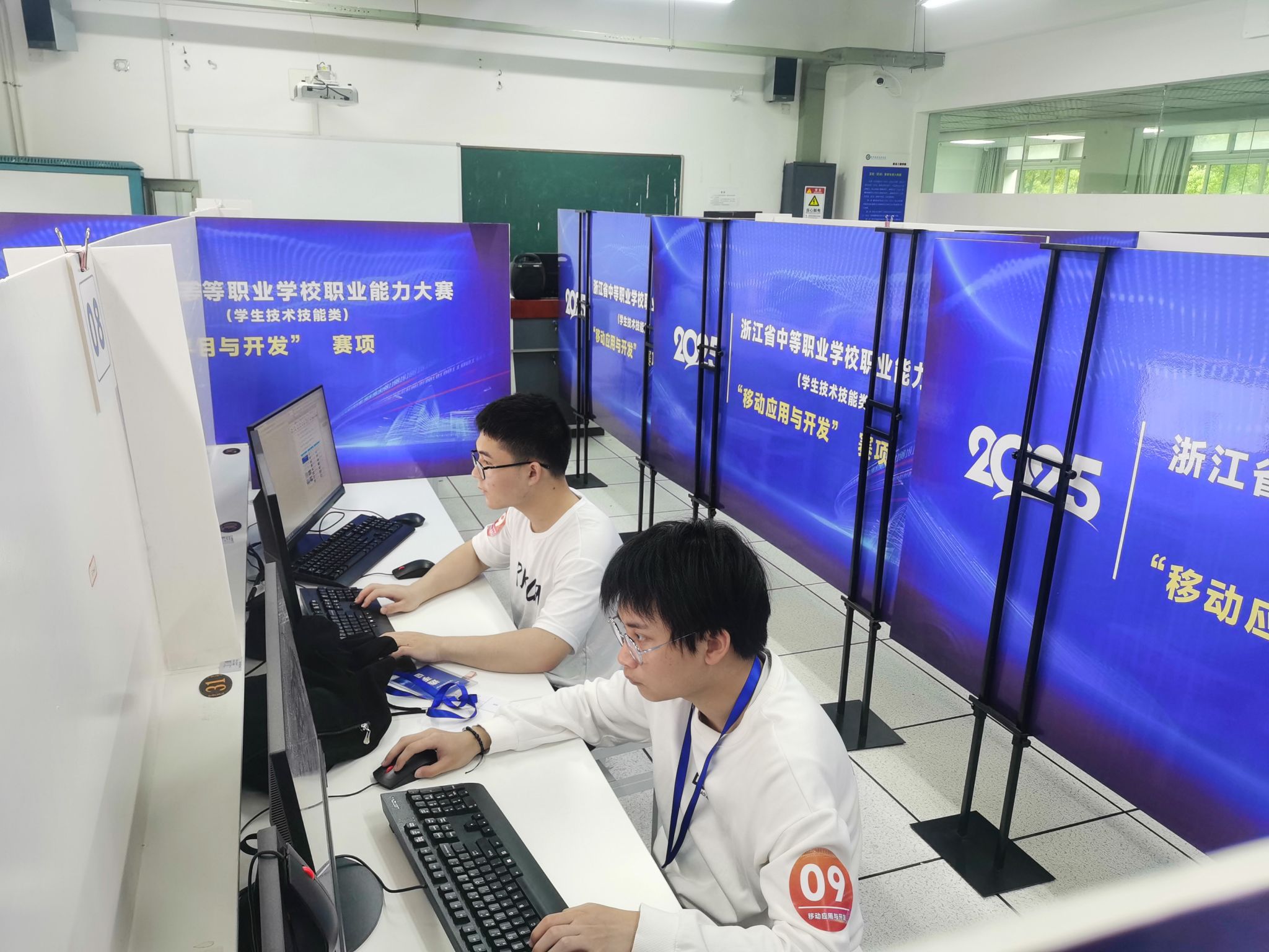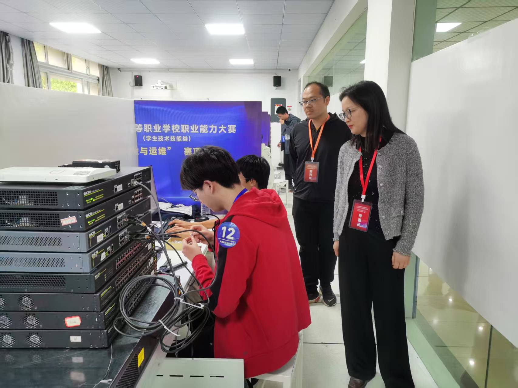 来自全省10个地区19所中职学校38名员工参加“网络建设与运维”赛项的理论测试、网络搭建及安全部署和服务器配置及应用三个方面内容,以知识在线检测和综合技术技能现场竞技两种形式开展比拼;10个地区18所中职学校36名员工参加“移动应用与开发”赛项竞技。经过激烈角逐,“网络建设与运维”赛项产生一等奖2队、二等奖4队、三等奖6队,“移动应用与开发”赛项产生一等奖2队、二等奖4队、三等奖5队。大赛期间,浙江省教育厅职成教处俞佳飞教研员亲临比赛现场,看望慰问大赛评委、工作人员、参赛学校带队领导和师生。