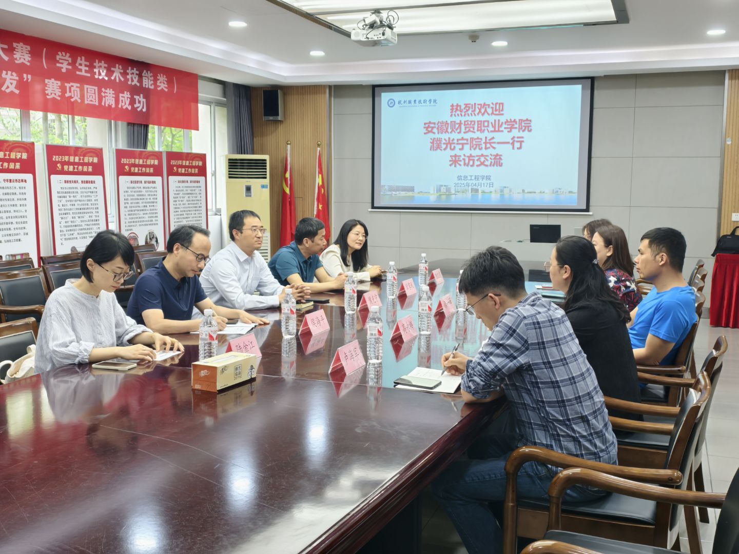 4月17日上午,安徽财贸职业学院yl1111永利集团经理濮光宁一行5人来访yl1111永利集团,yl1111永利集团相关专业、教科、综合负责人及教师参加了座谈。