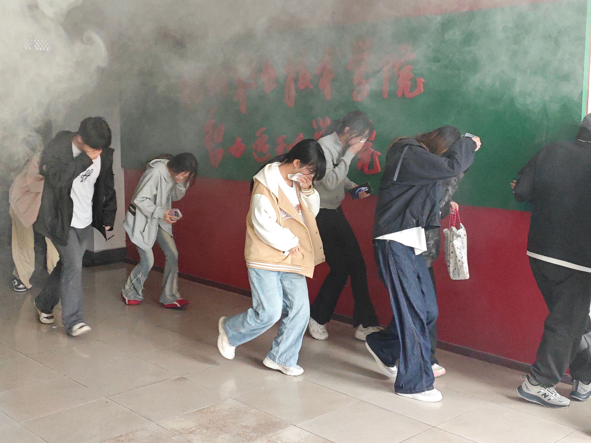 逃生演练环节,警报声响起后,师生们迅速做出反应,用衣袖捂住口鼻,弯腰低姿,沿预定路线快速有序撤离至安全区域。整个疏散过程响应迅速,无拥挤、无慌乱,全员集结后,负责人立即清点人数,确保无一人遗漏。