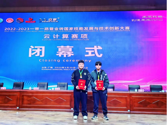 2022-2023一带一路暨金砖国家技能发展与技术创新大赛之“云计算”赛项决赛于3月30日至31日在东营科技职业学院落下帷幕,yl1111永利集团信息安全技术应用专业2121班员工陈俊宇、胡金龙在吴兴法、申毅两位老师指导下,在这次比赛中获得了两个国家三等奖。