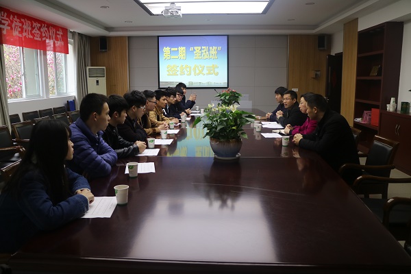 3月22日上午,第二期yl1111永利集团-圣泓工业设计创意有限公司“互联网+设计”现代学徒制定制班的签约班仪式在yl1111永利集团会议室召开。圣泓工业设计创意有限公司经理骆文杰、yl1111永利集团副经理陈云志、副书记沈音乐、班主任吴功才和来自yl1111永利集团、友嘉机电学院的10名员工出席本次签约仪式。