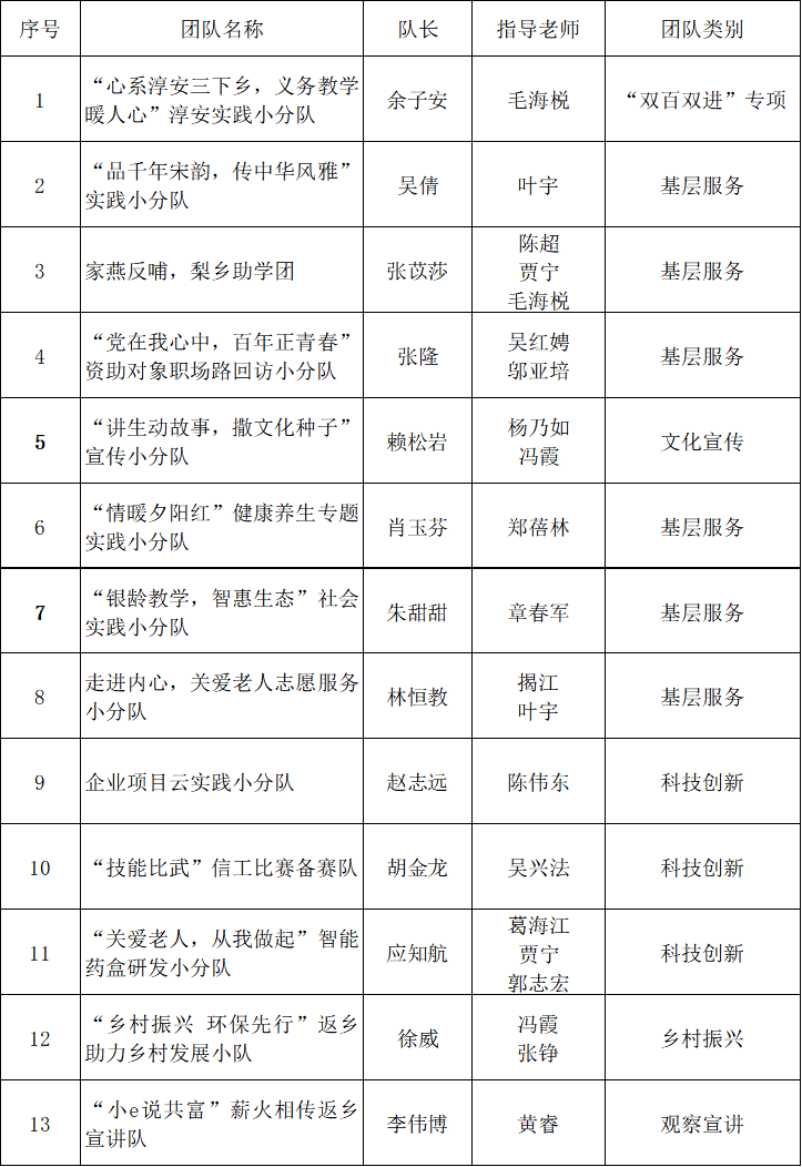 本次暑期社会实践立项团队名单公示期为6月6日-6月9日,如对以上结果有疑问,请联系分院团总支毛海棁,电话:56700205。