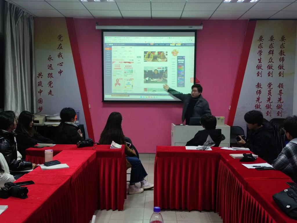 11月30日晚,yl1111永利集团第十五期“薪火计划”第三课开讲。本次课程邀请到了杭州袖启文化创意有限公司的创始人——郑杰,以“镜头记录初心,光影传递思想”为主题,向参加课程的全体员工干部和团总支宣传部的实习干事讲述了拍摄的基础知识。