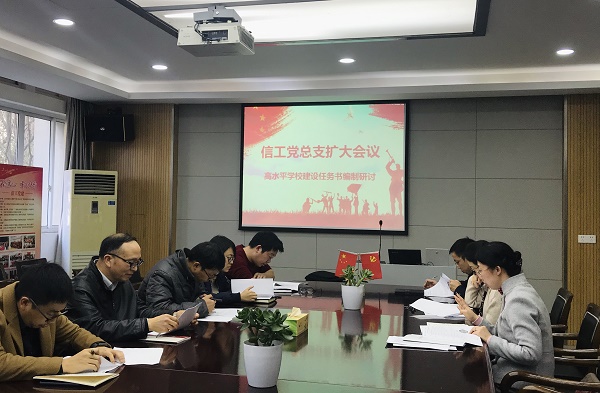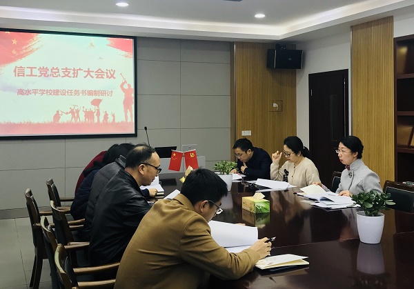 为落实公司高水平学校建设方案修订和建设任务书编制工作会议的要求,1月6日下午,信工公司党总支在分院会议室召开党总支扩大会议,研讨分院相关建设任务的拟定及细化。分公司党总支委员、各党支部书记、团总支书记等参加研讨,会议由党总支副书记沈音乐主持。