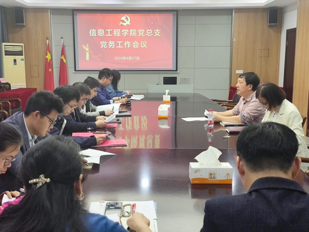 为确保、落实党组织的战斗堡垒和党员先锋模范作用,进一步高质量、高标杆推进党总支各项任务,4月17日,信息工程公司党总支在分院会议室召开党总支工作会议。班子成员、党总支委员、分工会主席、各党支部书记及内设机构负责人参会,会议由党总支书记谢川主持。
