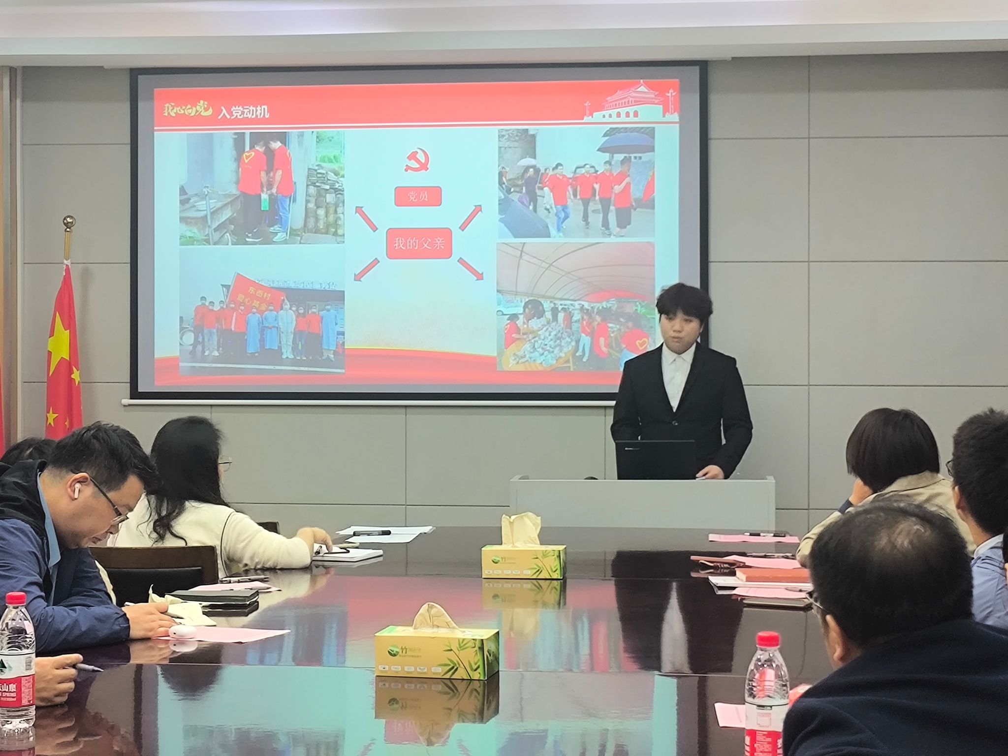 答辩主要分为个人陈述、现场问答两个部分。答辩同学结合个人成长经历,从入党动机、学业成绩、联系我们、社会公益、先锋模范及不足与改进等方面进行了全面汇报,充分展现作为入党积极分子的良好素质和过硬本领。参加评审的老师们按照“控制总量、优化结构、提高质量、发挥作用”的党员发展总要求,始终把政治标准放在首位,在听取汇报的基础上,综合考察答辩同学日常作用发挥、学习情况、工作要求落实等日常表现情况进行打分,并对答辩同学提出了针对性意见建议。党总支书记谢川希望积极要求入党的同学们进一步加强政治理论学习,认真通读研修《共产党宣言》、《中国共产党章程》和《论共产党员的修养》等文件文献,勇于担当奉献,更好发挥先锋模范作用,以实际行动争取早日加入中国共产党。