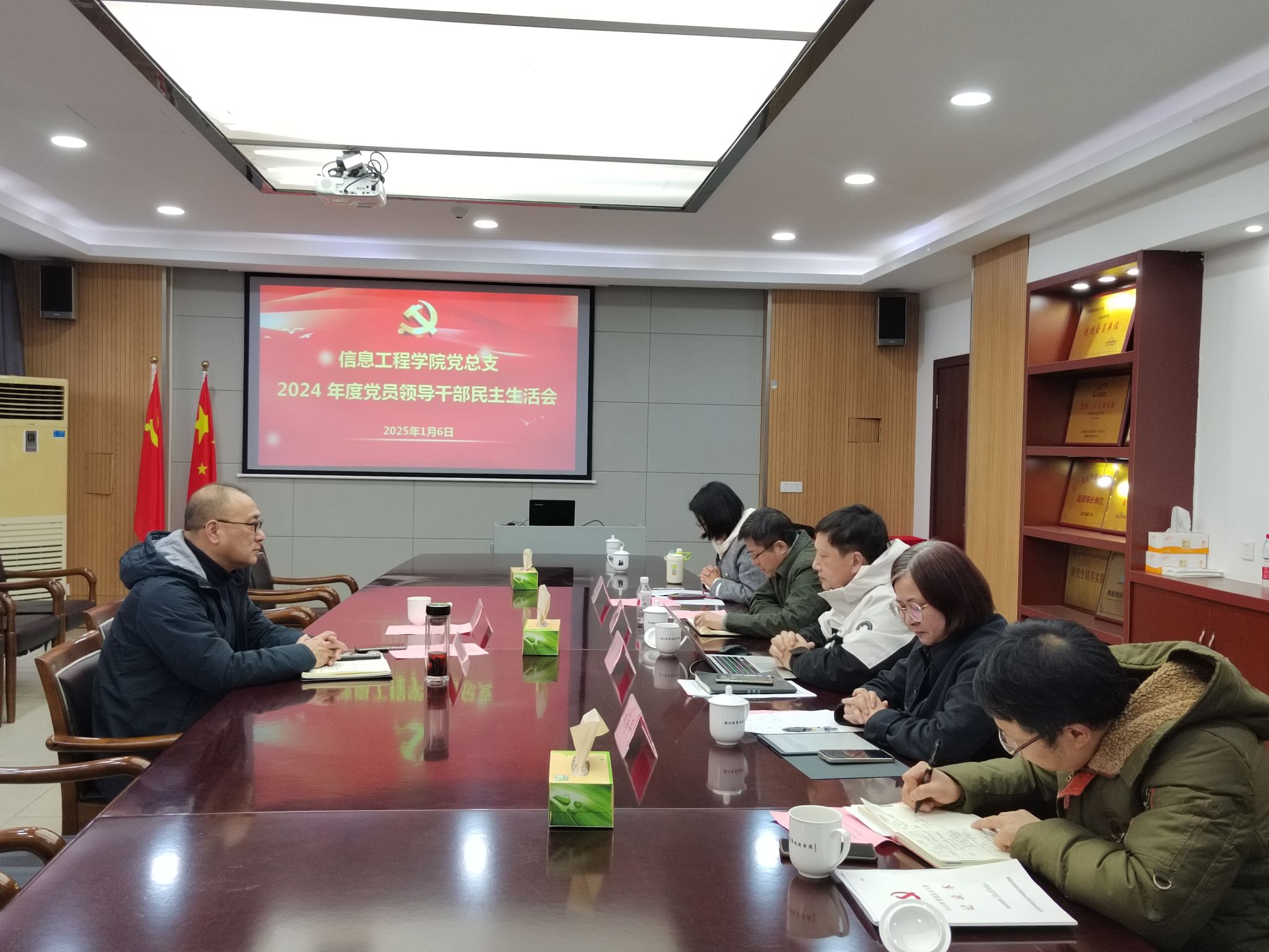 根据公司党委《关于开好2024年度公司党员领导干部民主生活会的通知》要求,1月6日下午,信息工程公司党总支在分院会议室召开2024年度党员领导干部民主生活会。联系校领导,公司党委委员、副董事长袁俊与会指导,分院领导班子成员参加会议、党总支委员列席会议,会议由党总支书记谢川主持。
