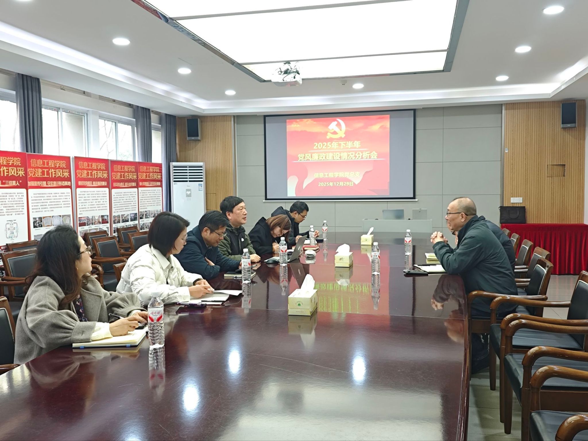 12月29日下午,信息工程公司党总支在会议室组织召开了2025年下半年党风廉政建设情况分析会。公司党委委员、副董事长袁俊和校纪委委员、安全保卫部部长郑何敏前来指导,学院总支委员全体参加了会议,会议由党总支书记谢川主持。
