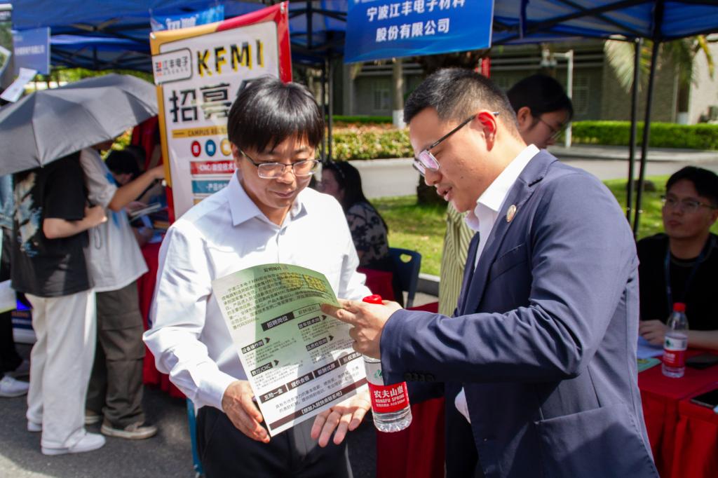 分院领导班子、实习指导老师、班主任、辅导员等到场了解招聘会开展情况,询问企业用人需求和毕业生求职进展,鼓励同学们抢抓春招机遇,尽早找到心仪岗位。学校主要领导及相关职能部门负责人亲临现场指导交流。经过前期接洽宣传,本次招聘会共有宁波江丰电子材料股份有限公司、浙江浙大网新图灵信息科技有限公司、杭州汤姆闪耀数字科技有限公司等20余家专业相关企业参会,涉及网络运维工程师、网络安全工程师、数字化专员等400余个岗位。多名优秀员工也为分院就业推进提供强力支撑。