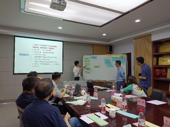 会议研讨环节由杨森主持。九位专家在杨森老师的引导下,采取头脑风暴法的方式对人工智能技术应用专业的岗位群、工作领域、具体工作任务、职业能力进行了分析,经过激烈而富有成效的思维碰撞与归纳总结,最终确定了专业的工作领域、典型工作任务以及其相应的职业能力。